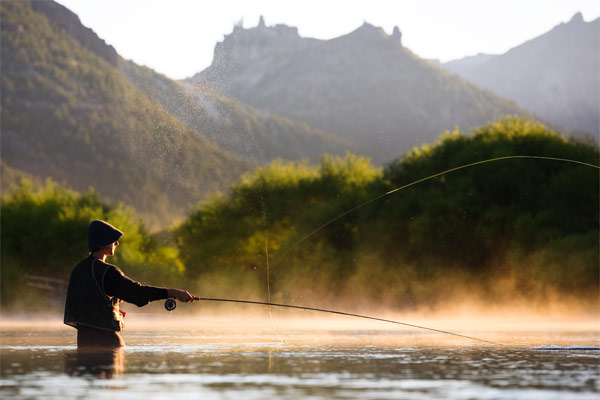 Su nombre da una idea de lo tranquilas que son sus aguas incluyendo los días ventosos. Sus costas recortadas caprichosamente le dan en contorno bellísimo. Situado al pié de la Cordillera de los Andes, lo hace sentir a uno que los imponentes cerros se descuelgan desde el cielo, de variadas formas y alturas, pero sencillamente hermosos e imponentes. Sus orillas bañadas de juncos indican lo ricas que son en alimento para la fauna ictícola, Damsel´s y Dragon Fly´s abundan en todos sus estadíos. Todas estas condiciones lo hacen uno de los pesqueros tradicionales más atractivos para los que practicamos la pesca con mosca. Generalmente nos embarcamos en la margen Sudeste y navegamos hacia la zona Noroeste, unos veinte minutos (aproximadamente 14 km.) para llegar a una zona en la que la única forma de acceder es por agua. Allí encontramos las desembocaduras de los Ríos Cuerno y Ayuhín. Y los Arroyos Cloaca y Campana. En estos lugares abundan Truchas de Arroyo (Brooks) de muy buen tamaño que oscilan entre 1,3 kg a los 2,3 kg de peso (en enero del 98 pescamos dos ejemplares que llegaron a los 3,5 kg). También podemos pescar Arco Iris de 1.5 Kg de promedio, lo que nos da una buena pesca durante casi todo el día. El promedio de capturas diarias por pescador es mayor a siete, que de ese tamaño y en lagos es muy bueno. Podemos pescar tanto con líneas de flote como de hundimiento